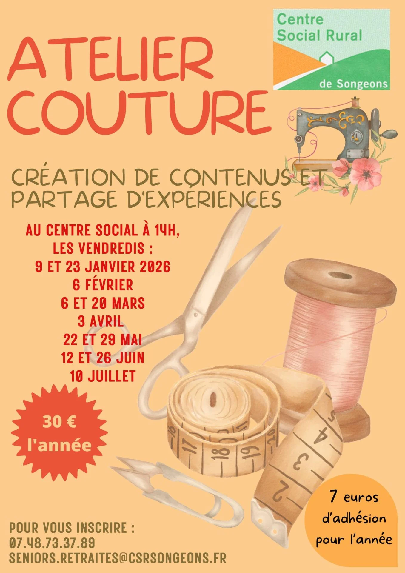 Atelier couture animé par une professionnelle qui saura vous accompagner dans vos projets personnels et professionnels. Tous les niveaux sont les bienvenues. Nous vous conseillons de venir avec votre matériel (machine à coudre, tissus et ciseaux). Le centre social peut vous conseiller et vous prêter du matériel sur place (le temps de l'atelier).